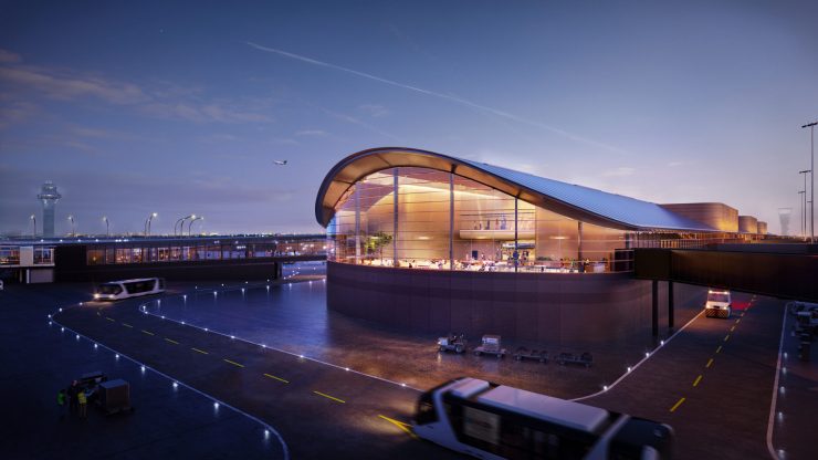 The City of Chicago and the Department of Aviation have begun construction on Concourse D at O’Hare International Airport, a project designed by Skidmore, Owings & Merrill in collaboration with Ross Barney Architects, Juan Gabriel Moreno Architects, and Arup. This is the first building in ORDNext, the most ambitious expansion in the airport’s history, which will be completed by the end of 2028 under the direction of AECOM Hunt Clayco Bowa. At the same time, planning is also underway for Concourse E, designed by the same design team.