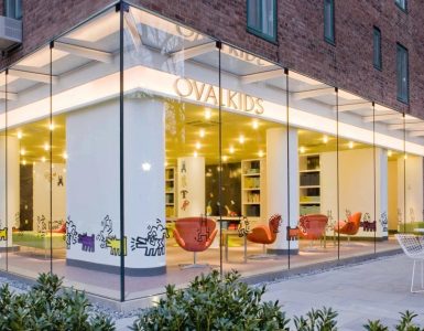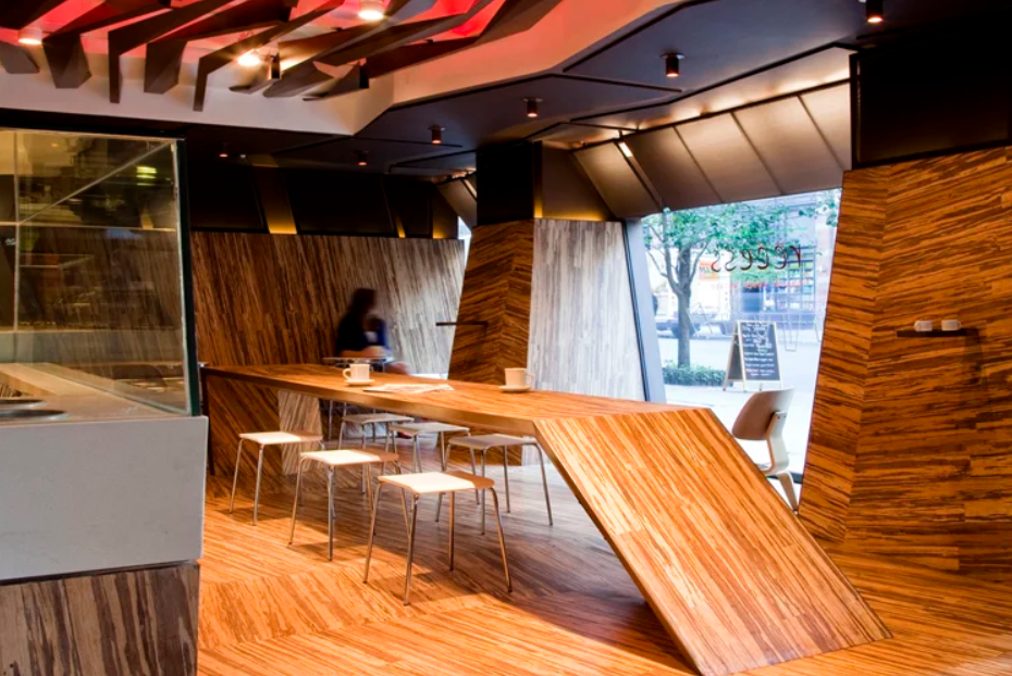 Recess Café’s first prototype blends sustainability with playful design, using renewable and recycled materials. The space is split horizontally: bamboo forms functional surfaces below, while fabric and metal above create a flexible, mood-shifting backdrop. It’s designed to adapt to both physical activity and changing atmospheres throughout the day.