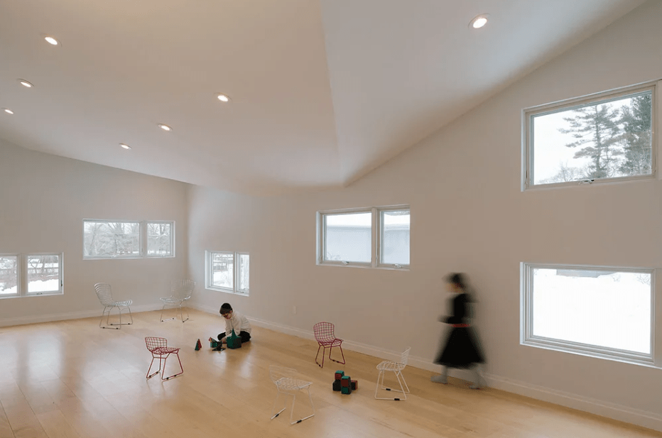 The West Hills Reggio Center in Huntington, NY, is a preschool and religious facility designed around the Reggio Emilia philosophy, where space itself becomes a teacher. With a compact 5,500 sq ft footprint, Scalar Architecture used shifting rooflines and varied window heights to create playful, light-filled spaces for children and adults. Sustainable strategies—like geothermal systems, passive energy design, and water harvesting—were integrated seamlessly, while simple materials were elevated into a rich architectural experience, all on a modest budget.