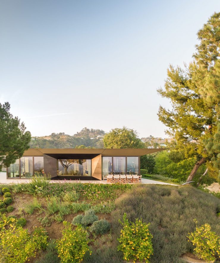 The American firm Donaldson + Partners drew inspiration from the geometry of precious stones to design Fractal-Facade House, a sculptural residence located in Southern California. The project stands on a 0.8-hectare plot in Beverly Hills, in the Trousdale neighborhood, from where the house opens up in a V shape towards downtown Los Angeles and the Pacific Ocean.
