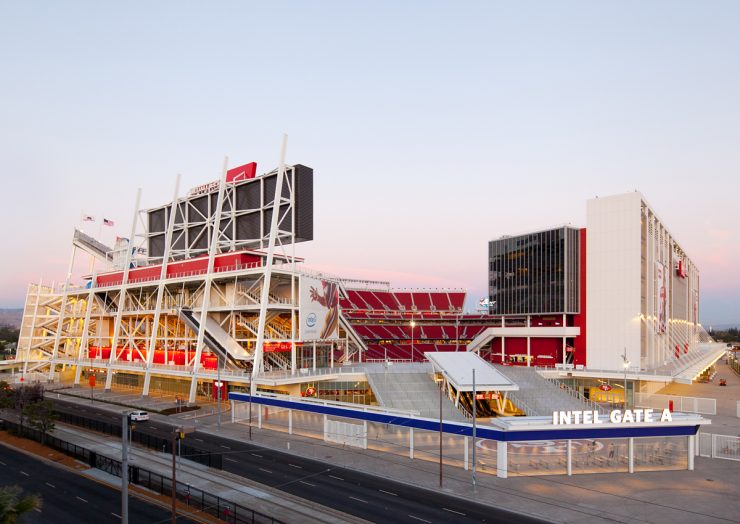 Scheduled to host Super Bowl 60, Levi’s Stadium was conceived as a direct reflection of the Bay Area’s landscape and engineering. Designed by HNTB and completed in 2014 as the home of the San Francisco 49ers, the stadium has a base capacity of 68,500 spectators, expandable to over 80,000 for major sporting and musical events. Its open structure takes advantage of the area’s mild climate, with natural grass, a side suite building, and an amphitheater that expands outward.