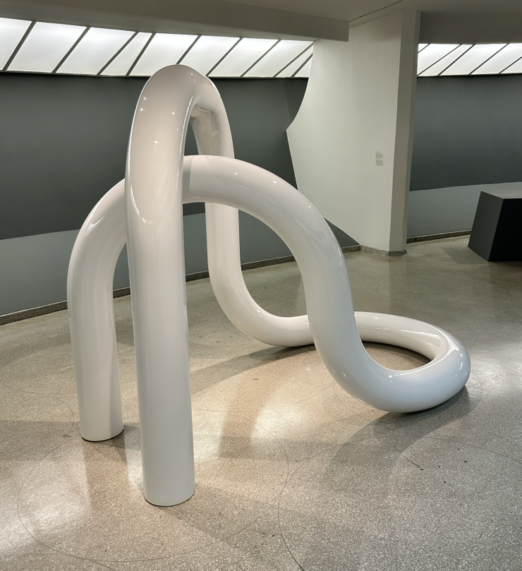 This was my first time seeing Bove’s work in person. I was already familiar with her bent steel sculptures, but had been wanting to explore more of her work for a long time. Seeing her work up close, and discovering especially her older work, was very impressive. I’ve admired her balance between strength and softness and also really enjoyed being able to view her artworks from different angles and distances, discovering new compositions while moving up and down the rotunda.