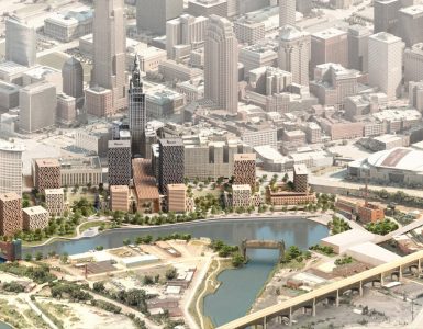 The goal of this design is to interact with the play of light and shadow that defines the east wing of the Everson Museum of Art in Syracuse. The wing’s position, mostly below ground level, creates stark contrasts of dark and light, which MILLIØNS architects addressed by introducing reflective and refractive materials.