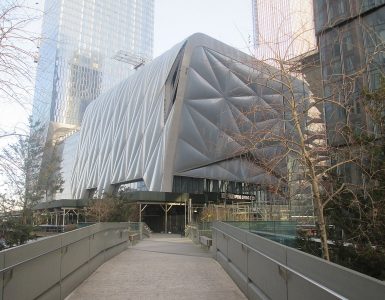 The building has a rectangular volume, with its longest side running parallel to the Chicago River. Part of its glass façade and aluminum pilasters are already visible, defining a sober and contemporary presence on the promontory it occupies, between the riverbed and the urban slope that characterizes this strategic enclave of the city.